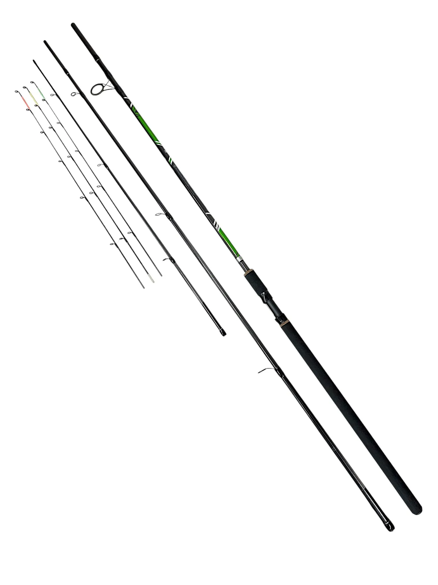 - ⚙️ Соединение Over Steek + 3 сменные вершинки — монолитный стык колен выдерживает серьёзные нагрузки при забросе тяжёлых кормушек, а сменные хлыстики позволяют адаптировать снасть под разный вес оснасток и силу течения;