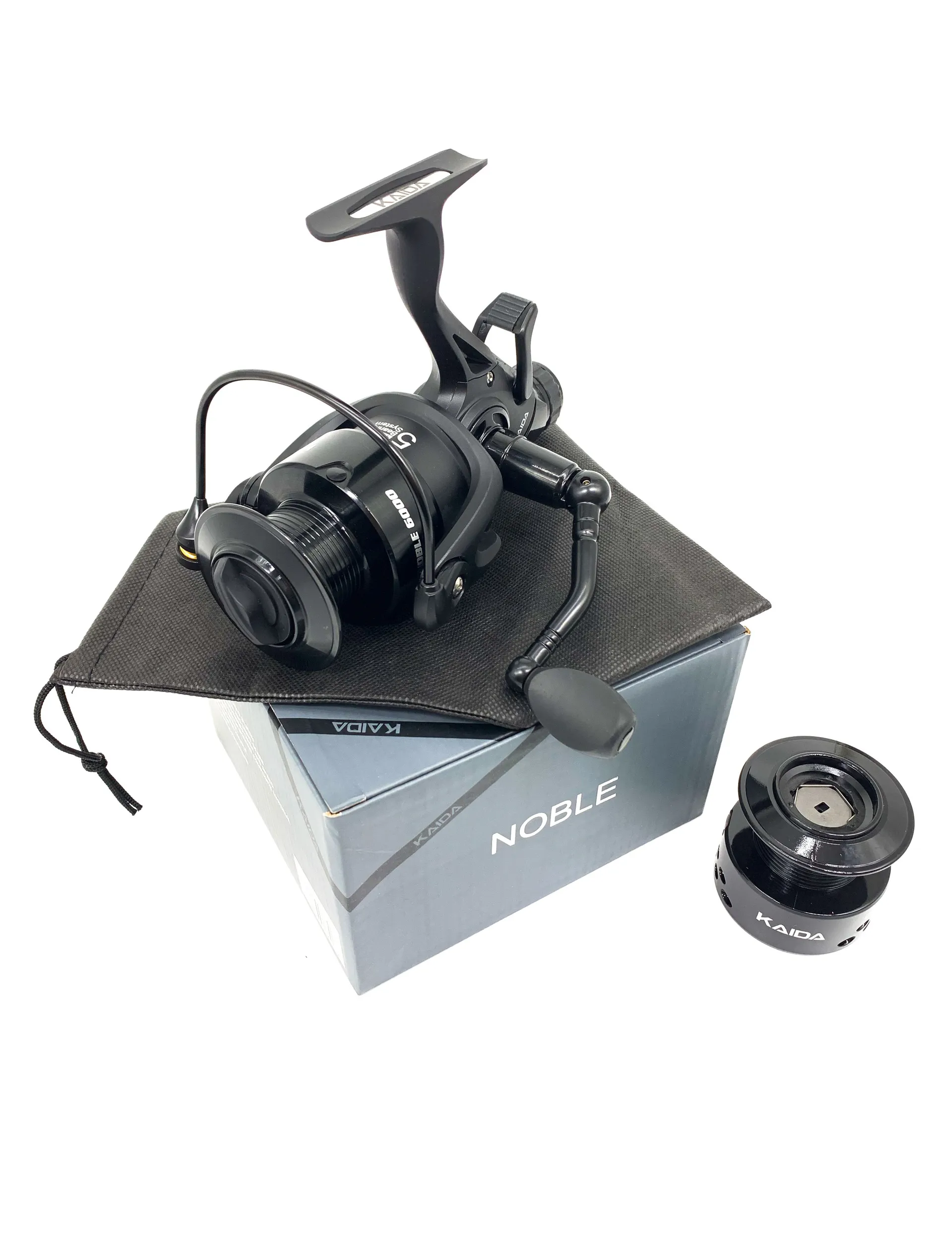 Безынерционная катушка с байтраннером Kaida Noble 6000 — новинка 2022 года от известного бренда Kaida, выполненная с применением современных технологий и материалов. Разработанная ведущими конструкторами с учётом накопленного опыта и пожеланий рыболовов, модель занимает средний ценовой сегмент в линейке бренда, предлагая отличное соотношение качества и стоимости. Катушка собрана качественно с минимально допустимыми люфтами механизма, что обеспечивает плавный ход и надёжную работу под нагрузкой. Эргономичный дизайн и приятные тактильные ощущения делают держание этого аппарата в руках комфортным даже при длительной рыбалке. Система байтраннер позволяет безопасно ловить крупную рыбу, предотвращая потерю снасти при мощной поклёвке.