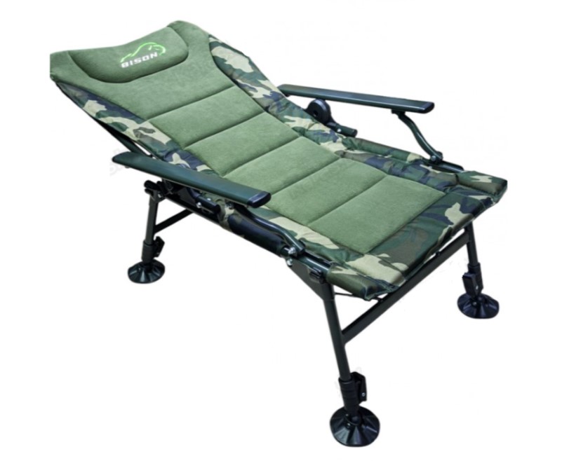 Кресло карповое складное Bison HBA-1001R — профессиональное рыболовное кресло, разработанное с учётом требований карпятников и любителей длительных рыболовных сессий. Каждая ножка кресла регулируется по высоте и наклону, что обеспечивает устойчивое положение на неровных поверхностях: берегах рек, озёр, склонах и каменистых участках. Спинка регулируется по углу наклона при помощи надёжных фиксаторов-защелок — быстрая настройка без закруток, а при полном раскладывании кресло превращается в удобную раскладушку для отдыха между поклёвками. Мягкий наполнитель сиденья и спинки создаёт приятные ощущения даже при многочасовом сидении. Каркас крепится на болтах, что позволяет без труда устанавливать на подлокотниках всевозможные обвесы для рыбалки: род-поды, держатели удилищ, столики и аксессуары. Такое решение также упрощает снятие ткани для стирки и обслуживания. Нижняя часть спереди усилена дополнительными трубками, что позволяет выдерживать большие вертикальные нагрузки и обеспечивает долговечность конструкции. Каркас изготовлен из прочных стальных трубок диаметром 19–22 мм, а широкие пятаки на ножках диаметром 10 см предотвращают проваливание в мягкий грунт, ил и песок. Кресло оснащено мягкими накладками на трубы каркаса для дополнительного комфорта и защиты одежды. Легко складывается и переносится, компактно для хранения и транспортировки. Отличное сочетание цены и комфорта делает эту модель идеальным выбором как для рыбалки, так и для отдыха на природе, даче и во дворе.