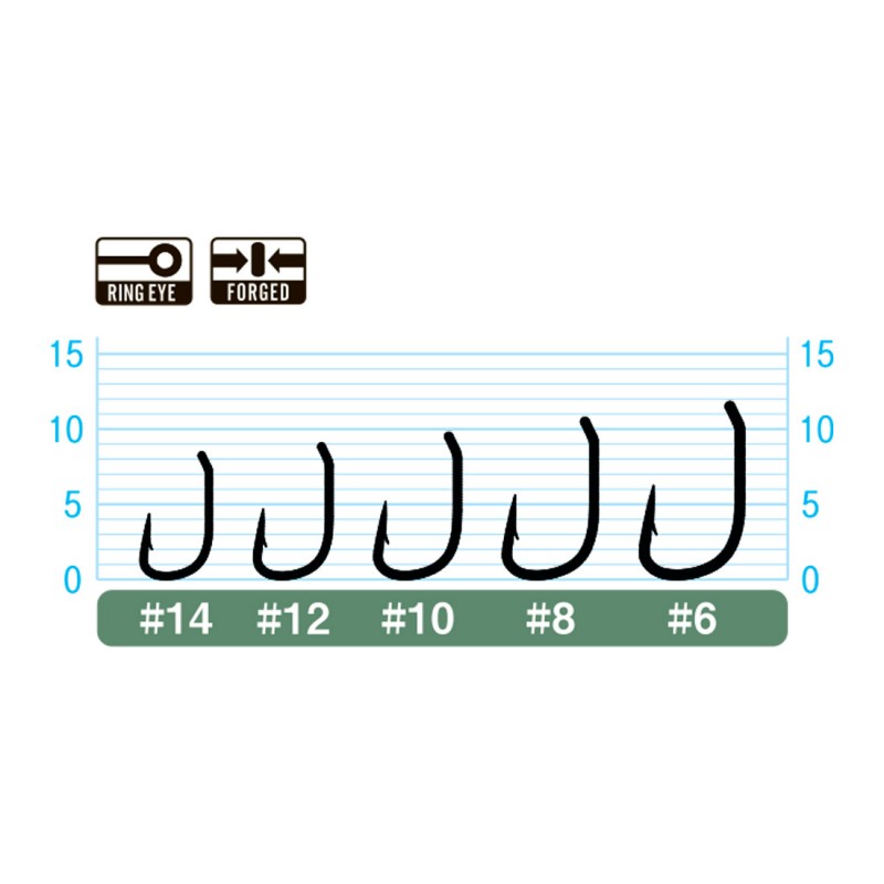 - 🎣 Кованый широкий поддев + прочность — ковка повышает прочность крючка на излом, а увеличенная ширина поддева обеспечивает надёжную подсечку и уверенное удержание крупной рыбы без сходов;