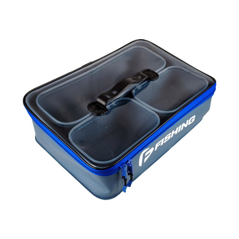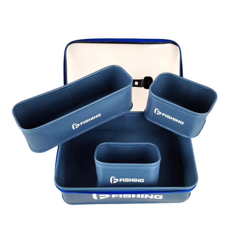 Набор емкостей F-Fishing Eva (4 штуки, 380x260x100 мм) — универсальная система хранения для рыболовных аксессуаров, насадок и прикормок, разработанная с учётом требований современных рыболовов. Основной контейнер объёмом 9.8 литра (38х26х10 см) вмещает три меньших ёмкости: два компактных по 2.1 литра (18х12х10 см) и один прямоугольный на 3.7 литра (34х11х10 см), что позволяет удобно сортировать и транспортировать различные компоненты оснастки. Прозрачная крышка основной ёмкости облегчает быструю идентификацию содержимого без необходимости открывать контейнер, а надёжная двусторонняя молния с удобной ручкой обеспечивает герметичное закрывание и комфортную переноску. Все ёмкости изготовлены из высококачественного материала EVA с армирующей структурой, что гарантирует прочность, долговечность и устойчивость к механическим повреждениям. Материал легко очищается, полностью водонепроницаем и не впитывает запахи — важное преимущество при работе с прикормками, животными насадками и ароматизаторами. Набор идеален для фидерной, поплавочной и карповой ловли: в нём удобно хранить опарыша, мотыля, кукурузу, бойлы, готовые прикормки, монтажи, кормушки и мелкие аксессуары.