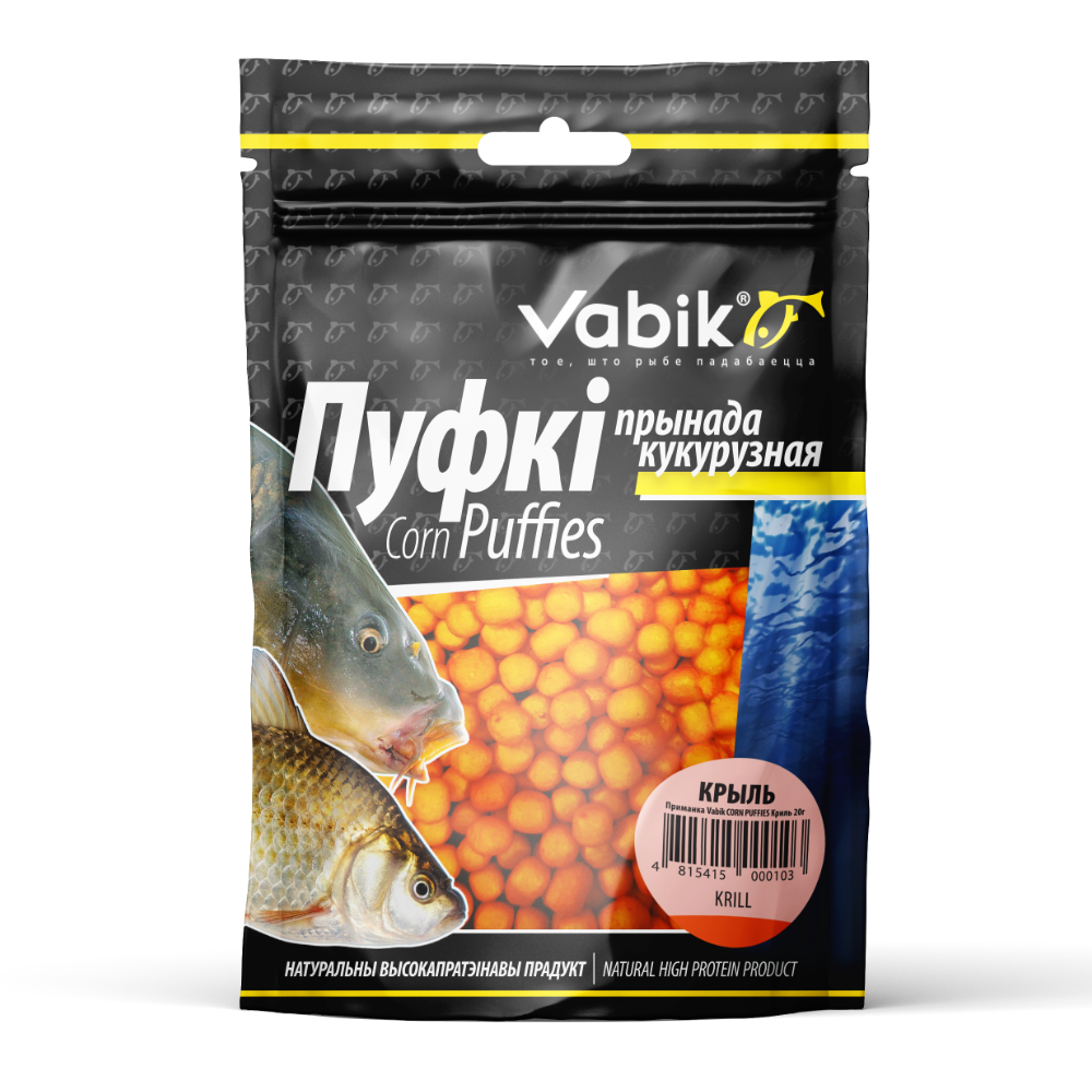 Насадка Vabik Corn Puffies «Криль», 20 г — ароматизированные шарики из воздушной кукурузы с насыщенным натуральным ароматом морского рачка криля. Уникальная пористая структура придаёт приманке высокую плавучесть, что делает её идеальной для ловли на илистом дне, в заросших водоёмах и при использовании метод-фидера. Животный белковый профиль эффективно привлекает карпа, карася, леща, плотву и других представителей семейства карповых, особенно в холодной воде.
