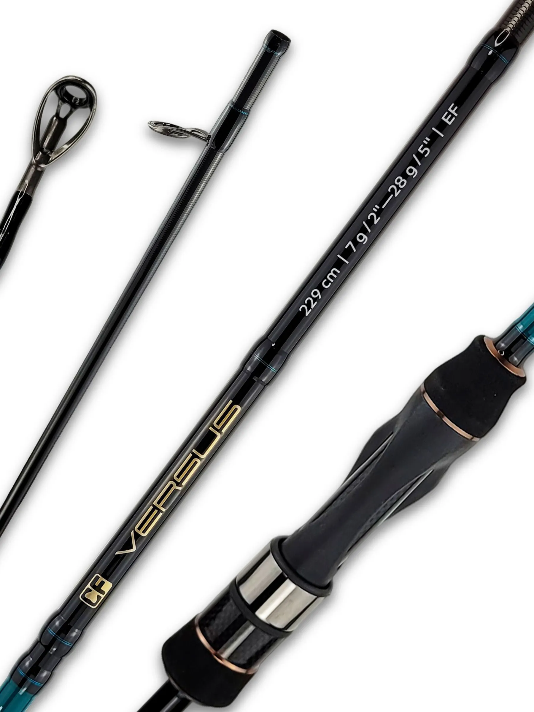 Спиннинг Crazy Fish Versus 2.29м 10-40гр — злой, жёсткий и мощный прут класса «хеви», созданный для охоты за судаком, щукой и сомом. Несмотря на серьёзную мощность, удилище остаётся чувствительным и лёгким: даже при очень активной работе резким джигом или размашистым твичингом на пределе мощности оно позволит отрыбачить весь день без критичной усталости рук и плеч. Модель 762HT создана для рыбалки на крупный силикон и воблеры-минноу до 140 мм в любых условиях, вплоть до больших глубин и мощного течения крупных рек. Спиннинг позволяет задействовать небольшие джерки и свимбейты в пределах тестового диапазона. Комфортный рабочий диапазон: от 10 г груза с 3-дюймовой приманкой до 40 г груза с 5-дюймовой приманкой, а также воблеры длиной до 140 мм.