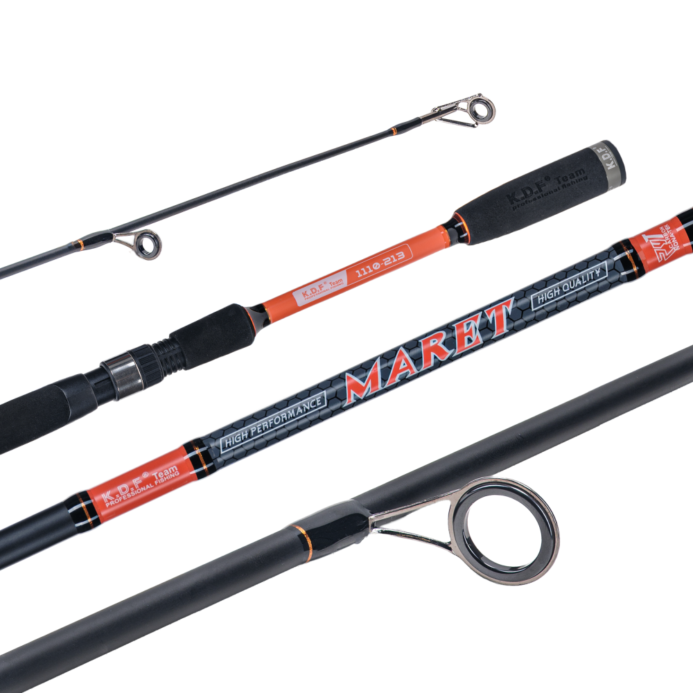 Спиннинг K.D.F Maret 2.13м 10-45гр — универсальное удилище, созданное для тех, кто ценит дальний и точный заброс, а также гибкость в подборе приманок. В тестовом диапазоне 10–45 г отлично работают средние воблеры, тяжёлые вращающиеся блёсны, колебалки и джиговые оснастки, что позволяет целенаправленно охотиться на щуку, судака или крупного окуня. Удилище выполнено из прочного карбона 24Т, благодаря чему сочетает лёгкость и надёжность. Быстрый строй обеспечивает высокую чувствительность и позволяет мгновенно реагировать на каждое прикосновение рыбы. Разнесённая рукоять из EVA удобно лежит в руке, создавая комфорт при длительной ловле, а винтовой катушкодержатель с нижней гайкой надёжно фиксирует катушку, исключая люфт даже при силовых вываживаниях. Семь колец SIC с противозахлёстным тюльпаном расположены так, чтобы происходило правильное распределение нагрузки и плавный сход лески, делая забросы дальними и контролируемыми. При транспортной длине 110 см и весе 167 г спиннинг остаётся удобным в переноске и не утомляет во время рыбалки.